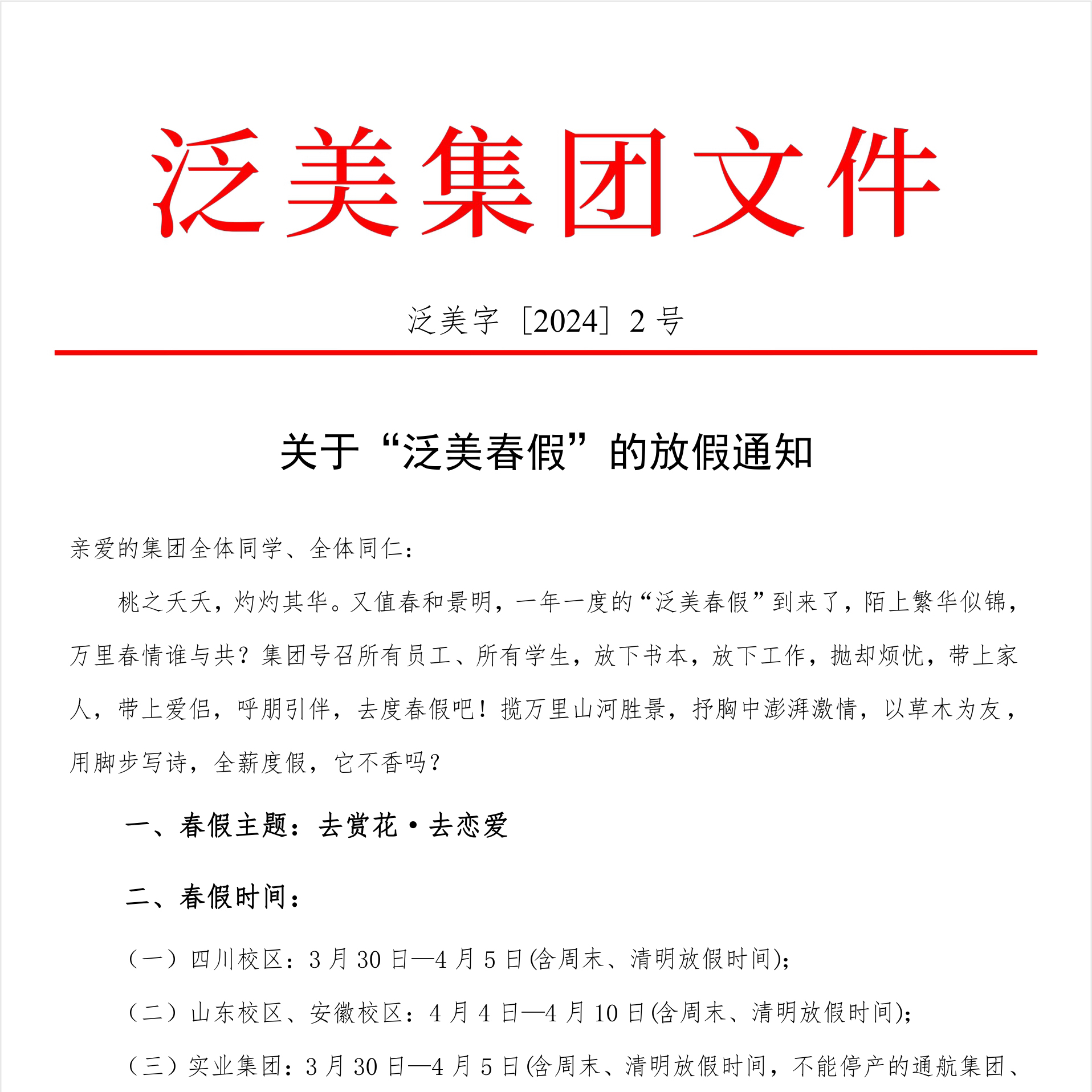 桃之夭夭🤕,灼灼其华⚒。又值春和景明,一年一度的“泛美春假” 到来了,陌上繁华似锦,万里春情谁与共🧗🏻♀️🙅🏿♂️?集团号召所有员工、所有学生😫,放下书本,放下工作☁️🐰,抛却烦忧,带上家人🚼,带上爱侣,呼朋 引伴🤳🏻,去度春假吧!揽万里山河胜景,抒胸中澎湃激情,以草木为友🧑🏽🎓,