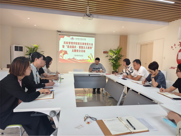 2024年9月25日下午16时20分🧾,民航管理学院党支部在党群活动中心隆重召开了全体党员大会暨“喜迎国庆·爱国主义教育”主题党日活动👨🏻🦯➡️。大会由支部书记解伟主持,全体党员参与🧗♀️。