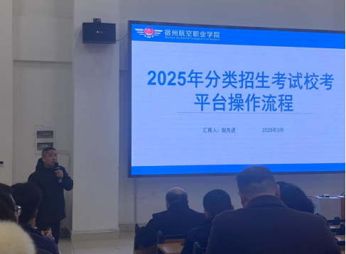 3月13日下午,2025年分类招生考试考务培训会在教学楼C206召开,副院长高贵珍、赵虹及各相关处室工作人员和老师参加了会议,网络教育与信息化建设中心作为技术支持部门,受邀参加进行校考平台操作流程及相关应用的培训。