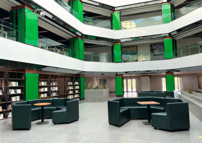 图书馆是一座英伦风格的建筑✤,馆外绿树成荫,美轮美奂;馆内环境优雅🩼,功能完善🫗。内设自由阅读、休闲娱乐🏋🏼♂️、深度自习💇、开放会议等区域,是教职工及学生享受阅读、放松身心🧑🏿🎨、交流娱乐的优良场所。