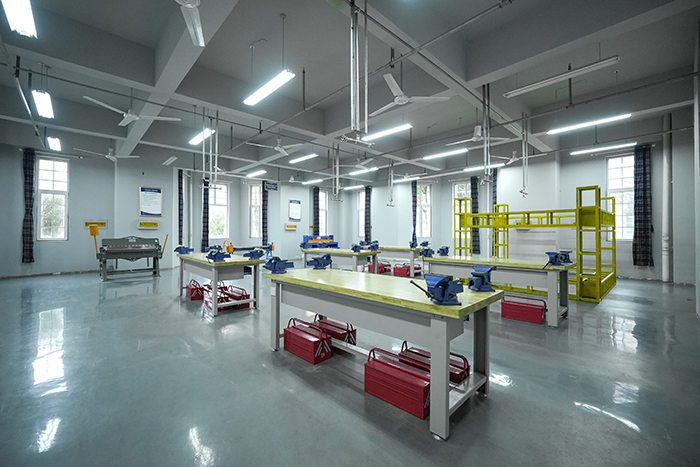 钣金铆接实训室设有卷板机🫂、弯板机、剪板机和钣金铆接工作台。可供航空材料👨🏿✈️🫄🏽、飞机维修技术基础、维修基本技能等课程的实践教学和实训。