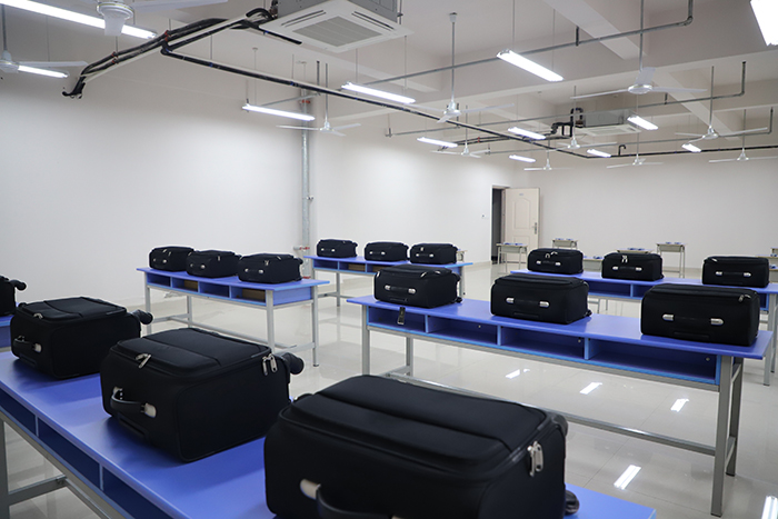 人身检查与开箱包实训室。占地面积为122平方米,可容纳40名学生进行教学实训。适用于民航安全检查专业学生实训实操🍐。
