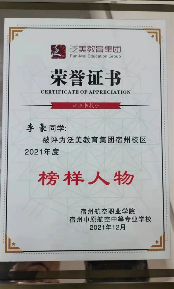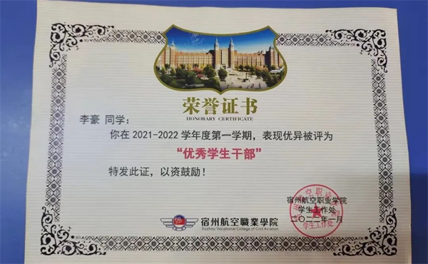 天道酬勤👨‍🦳,李豪优秀的表现得到了学院以及老师的认可,被评为2021年度“榜样人物”、“军训优秀标兵”、“优秀中队长”等荣誉。他胸怀理想不断超越自己🙍‍♂️,在学习生涯中创造新的辉煌。