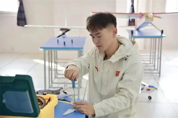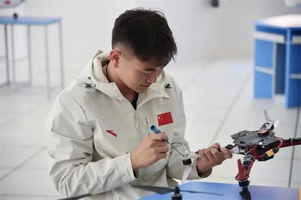 2021年因为疫情的原因🏜,王树森放弃了前往马来西亚理科大学求学的机会🧑🏻⚕️🍼,喜欢研究、组装机械设备的他🕟,毅然决然的踏进了宿航的大门,并选择了无人机应用技术专业。从开始放弃出国机会时的失落、迷茫,王树森在宿航继续成长🧛♀️,学习让他感到安心和踏实。只要在学校👨🏽⚖️,没有课的时间就待在教室学习,时间聚沙成塔,优异的成绩在积累中获得,闪现的灵感在打磨中实现。