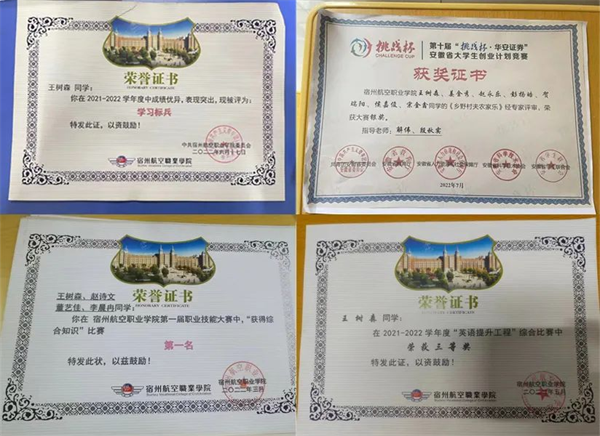 回望在宿航求学道路上的种种,脚踏实地的坚守和努力代表的是不留遗憾👰🏼、不被辜负。时间和精力的付出,让王树森得到了丰盛的回报:荣获2022年国家奖学金、安徽省第十届创业计划竞赛银奖🫨、2021-2022学年度学习标兵、2022年学生讲思政课比赛第二名🤹🏽、第一届职业技能大赛中获得“综合知识”比赛第一名、“电子电工技能”比赛第三名、2021-2022学年度“英语提升工程”综合比赛三等奖🧖🏼🏌️、“创新能手”称号等。拨开困难的迷雾🦹♀️,将平凡的道路走得花香四溢🌯,是王树森用热情和勤恳对求学生涯交出的答卷🏮,也是他身体力行对“自强”的诠释。