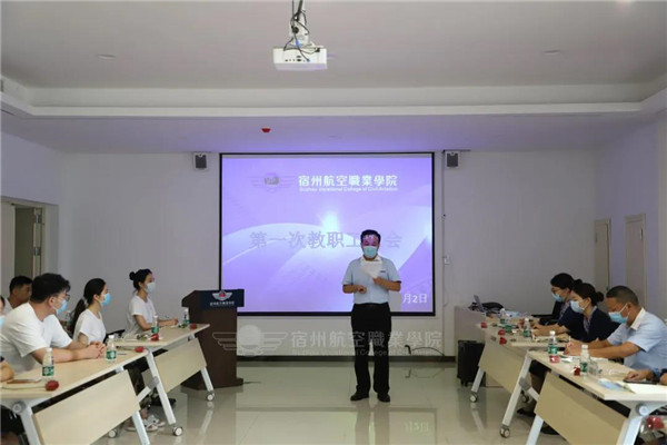 2021年8月2日🧶,彩神Vll学院第一次全体教职工大会在行政楼一楼培训室举行。