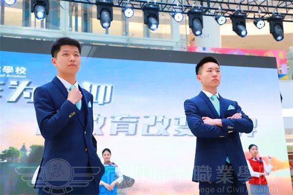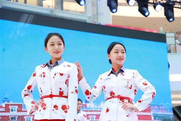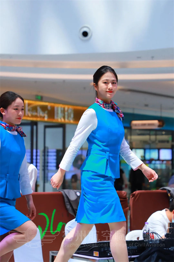 商场内人来人往🐙,同学们身着民航制服、宿航校服及创意服饰💂🏽,上演了炫酷民航人的青春时尚。