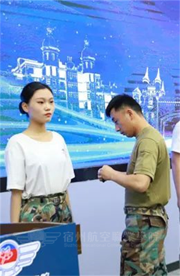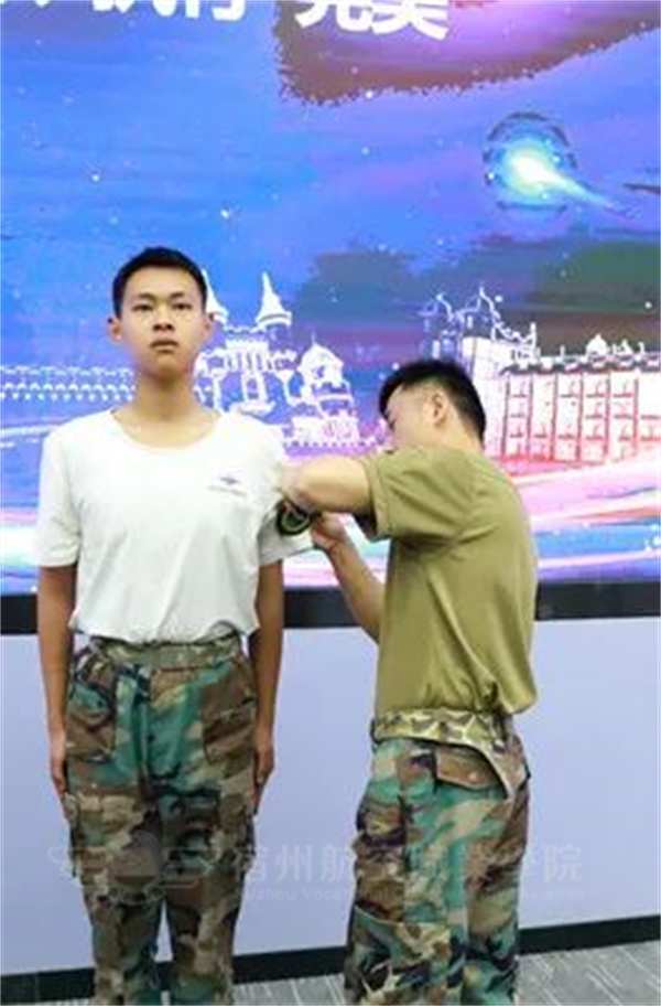 宿航院军体教官关振东任命王旭、孙密密、赵家福3名同学担任此次活动实习教官并授予臂章🏊🏿‍♀️。