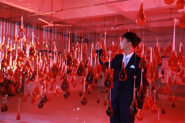 2000枚包裹着红色药水的安全套仿佛红色炸弹💁🏻‍♂️📒,高低有致的垂挂在展览现场,获得了同学们的高度关注,令人震撼。展览以红色药水代指病毒,用安全套包裹药水🧶🥿,防止病毒与人体的接触🏇🏿,旨在呼吁学生正确使用安全套👰🏻‍♀️,保护自己和他人。