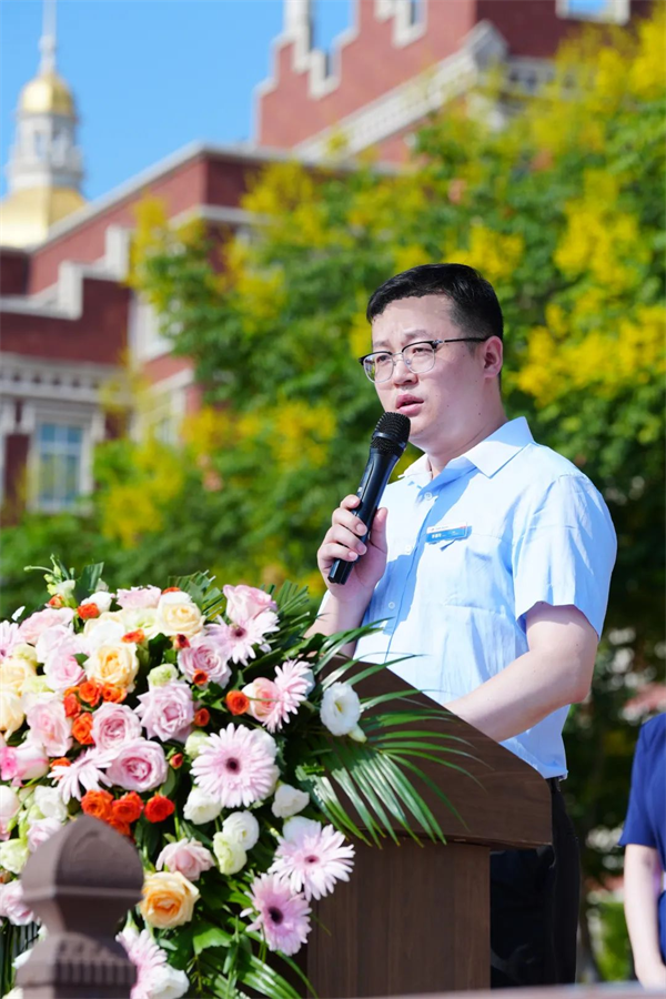 盛梓强带领同学们宣誓:坚持传承善与美德,传递爱与快乐的院校精神🧑🏼‍💻,牢记完善自我,创造生活的校训,让我们成为现代绅士与淑女。