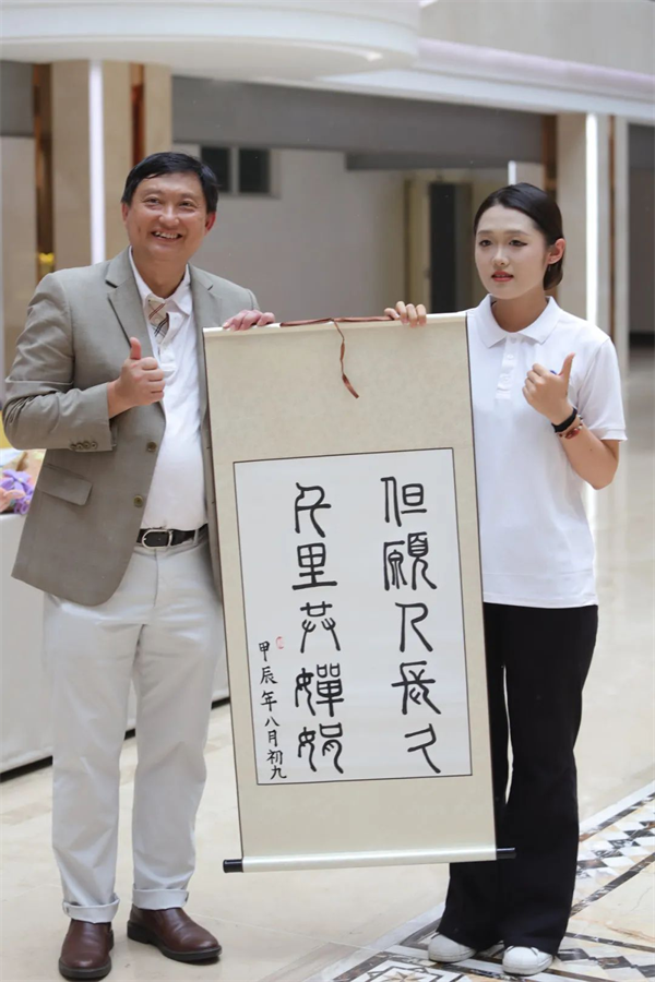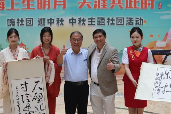 海上生明月,天涯共此时Ⓜ️。值此中秋佳节之际👧🏿,来自宿航的美食社和手工社亲手制作手工月饼;王卫林带领书法社亲手写毛笔字赠送Vincent;音乐社献上了优美动听的英文歌曲;舞蹈社也献上了独具安徽特色的舞蹈表演《黄梅雅韵》。