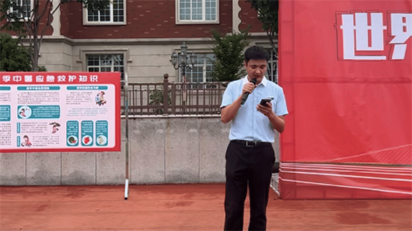 谢凡飞发表讲话:“在这个充满意义的日子里🥬,相聚于此👎🏿,不仅是为了纪念世界急救日,更是为了共同守护每一个生命的宝贵。运动让生活更美好,但安全永远是我们前行的基石🔳。希望通过今天的活动♥︎,每位学生都能成为自己和他人的守护者👨🏼💻。”