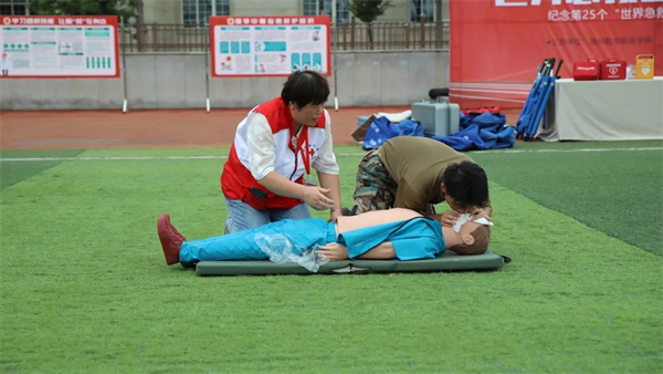 活动现场,精心设计了多个急救模拟场景。在“运动损伤急救区”🗽,红十字会指导老师与学生们共同模拟了运动中常见的扭伤、擦伤等紧急情况,现场演示了正确的包扎、冷敷等急救措施☀️,并邀请学生亲身体验🤸🏿,确保每个学生都能掌握基本的自救互救技能。