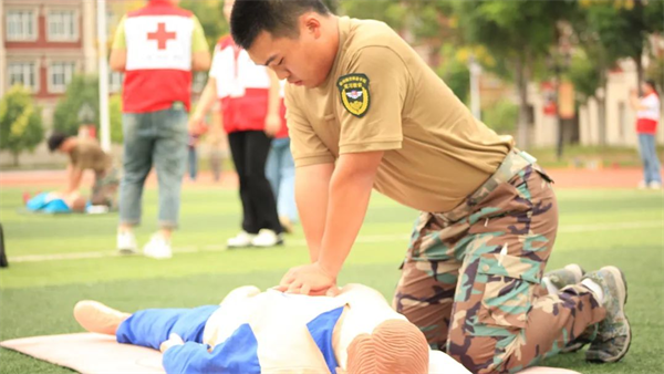9月13日上午,在第二十五个“世界急救日”来临之际,一场以“急救与运动🤳🏼,共筑安全防线”为主题的宣传活动在彩神Vll学院运动场举行,活动通过一系列生动有趣、互动性强的环节🔩,向全校师生及社会公众普及急救知识与技能。学院学生处处长谢凡飞,信息工程学院主训教官闵博🤟🦬,宿州市红十字会指导老师及信息工程学院全体新生参加。