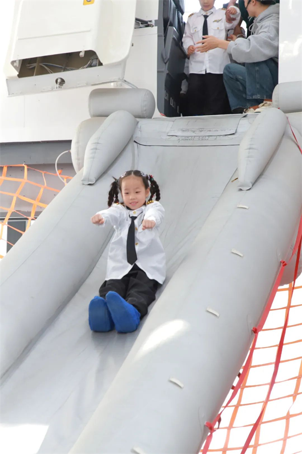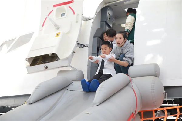 换上专业的实训服装,学习跳舱逃生的标准动作和逃生方法☎️,使用充气式救生滑梯☝🏿,进行飞机陆地紧急迫降情景模拟💁🏼🕕,完成安全撤离。锻炼孩子胆识,让孩子们在体验滑梯玩乐的同时学习跳舱逃生知识,进行团队协作💸,让孩子们融入集体🦏。