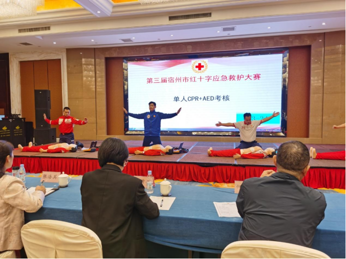 10月13日至14日,“关爱生命 救在身边”第三届宿州市红十字会应急救护大赛成功举办。该赛事由宿州市红十字会、市人力资源和社会保障局、市卫生健康委员会🛀🏿、市总工会联合主办🤏🏻🎙,汇聚市直相关单位及各县区多支队伍同场竞技,围绕急救理论、心肺复苏实操、创伤救护等核心内容展开专业比拼。