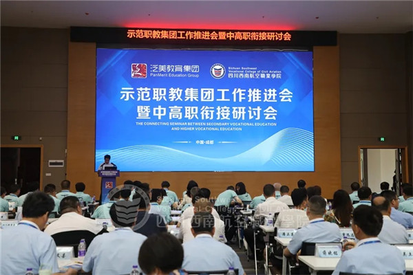 为增进职教集团成员间的交流与沟通,促进政行校企间的合作🏃🏻♀️,实现优质资源共建共享,7月9日,泛美教育集团“示范职教集团工作推进会暨中高职衔接研讨会”在四川西南航空职业学院召开。来自教育部、四川省教育厅👨💻、职教领域的专家💆🏽♀️,企业代表😲、联合办学校长以及职教集团成员单位代表共200余人相聚一堂,就如何加强产教融合、促进校企合作👎、深化集团化办学等话题展开深入研讨。