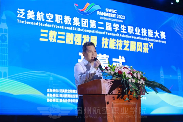 开幕式伊始🫱,泛美教育集团董事局第一副主席、四川西南航空职业学院院长裴明学博士致辞。他表示,泛美航空职教集团作为国家示范性职教集团,将持续积极充分发挥引领示范作用。此次大赛主题为三教三融强发展💸🌵,技能技艺展风采🈲,在为同学们提供切磋技艺、展示水平的舞台的同时🔀,更重视技能大赛在引领三教、助力新时代高质量民航技能人才培养,进一步深化普职融通、产教融合🤛🏼、科教融汇,进一步加强交流互动♿🕵🏽‍♂️、合作共赢等方面发挥重要作用🎅🏼。