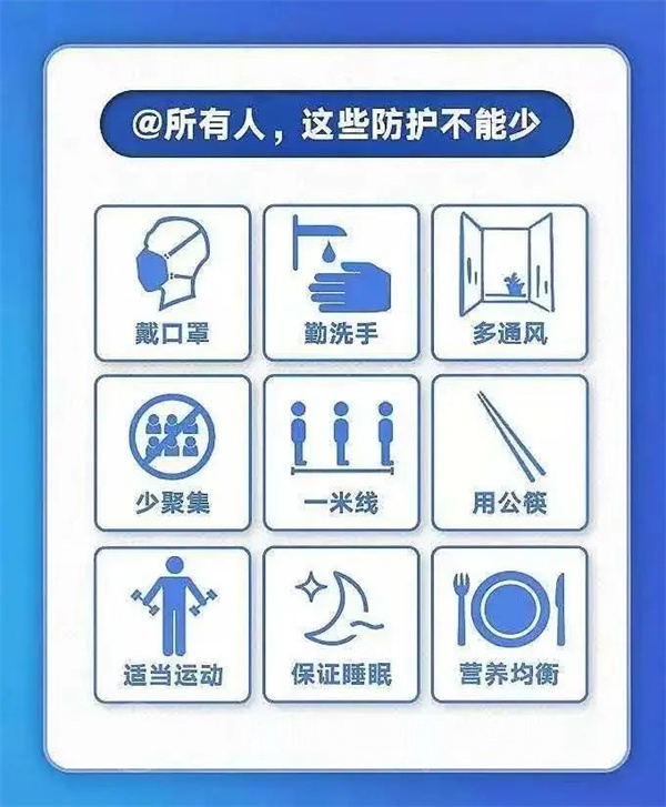 1.科学佩戴口罩,并与他人保持1米以上的社交距离。戴口罩是保护自己和他人的重要“防线”。