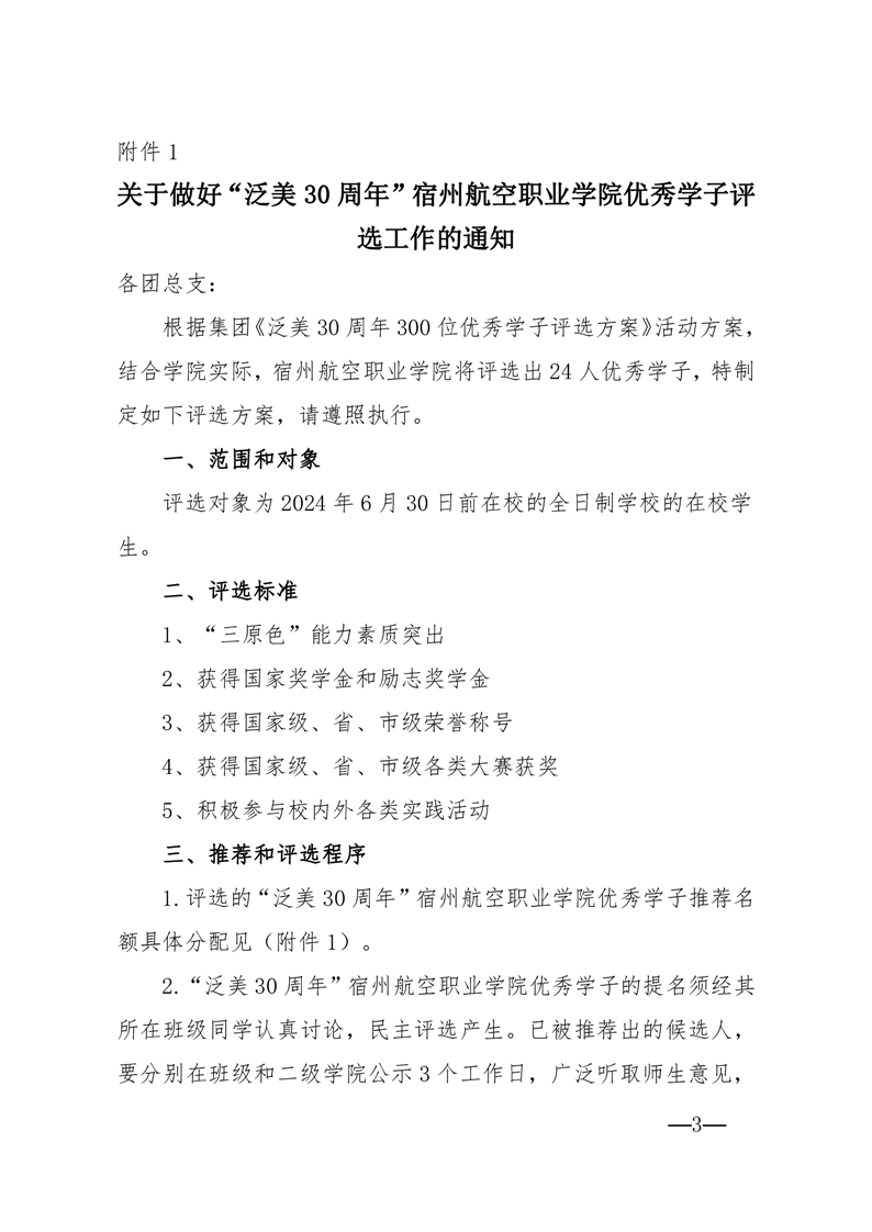 关于开展“泛美三十周年”优秀学子评选活动的通知