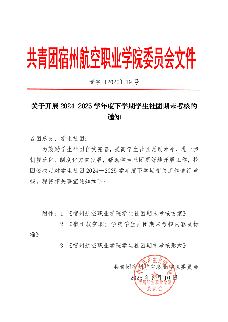 青字〔2025〕19号关于开展2024-2025学年度下学期学生社团期末考核的通知