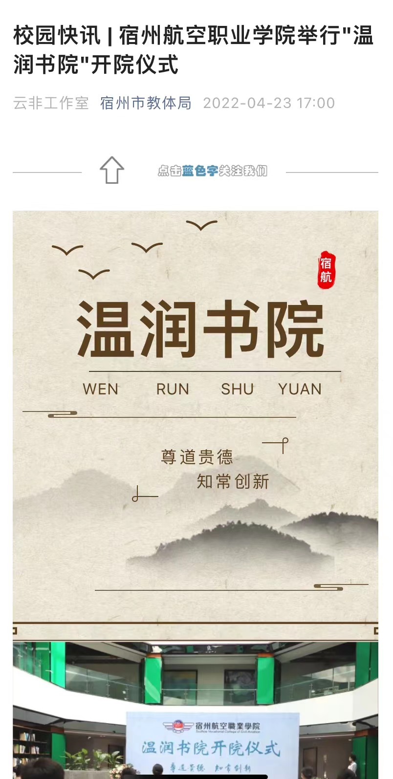 据了解,学院高度重视文化育人,注重以文化人🩴、以文育人🔗。温润书院打造多个宿航师生提升自我🥯、完善自我的文化平台,主要有“温之阁”、“润之轩”、“文之馆”等主题教育场所👨💼。在极具现代风格的梦幻校园中,坚持弘扬传统文化🐟,坚持文化自信,彰显文化特色,实现学习世界之美🪸,成就中国之美🥎🧑💻,拓宽了人才培养的路径。