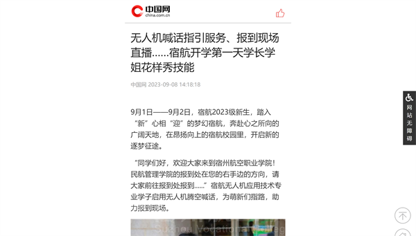 《中国网》无人机喊话指引服务🗃、报到现场直播……宿航开学第一天学长学姐花样秀技能