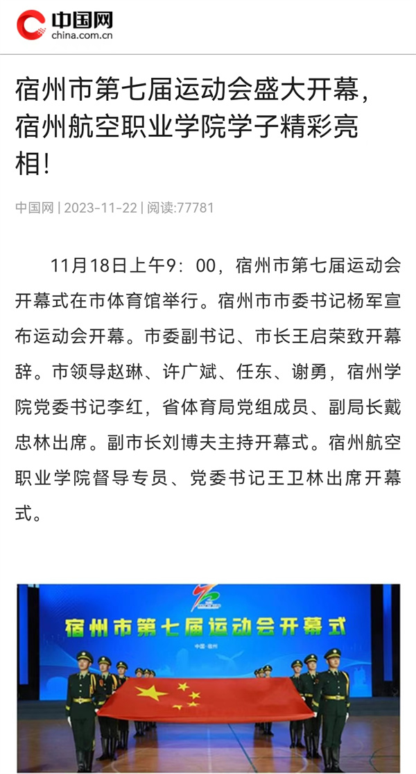 《中国网》宿州市第七届运动会盛大开幕,彩神Vll学院学子精彩亮相!