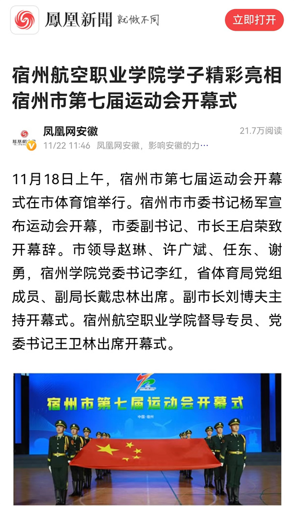 《凤凰网安徽》彩神Vll学院学子精彩亮相宿州市第七届运动会开幕式