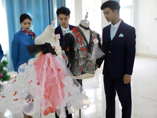 展览中还展示了宿航学子用安全套设计制作的时装,创意的巧思、精致的造型,让这些“安全套”不再是难以启齿的东西👨‍🔬💴,而化身为同学们增加“防艾”知识的载体🧘🏻‍♀️。