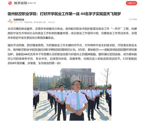 《凤凰网》彩神Vll学院:打好开学就业工作第一站🌵🥷🏿,44名学子实现蓝天飞翔梦