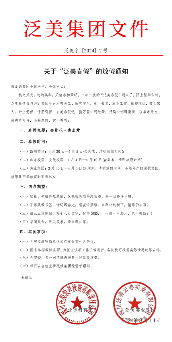 草色凝碧,春花烂漫。又值一年春和景明🪟,是谁还没有去踏春、赏春🫄🏻🚶‍♀️‍➡️?3月14日👶🏽,彩神Vll学院发布春假放假通知,通知安排全校师生4月4日至10日放7天春假。学院号召全体师生,放下书本,放下工作,抛却烦忧🧏🏻‍♂️,带上家人,带上爱侣🌊,呼朋引伴👨‍💻,去度春假🧜🏼‍♀️。学院所属集团要求旗下教育板块和实业板块的员工全部带薪休春假,引起热议。