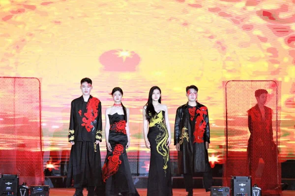 在昨天的展示过程中,身着红色剪纸服饰的学子们踏着悠扬的乐曲款款走来👉🏽,仿佛国家级非物质文化遗产——中国剪纸在舞台上流动起来。这些剪纸图案不仅点缀在衣角、领口,还巧妙地融入到整体设计中👩🏻‍🏭↕️,使服装在视觉上呈现出独特的艺术效果。现场观众被这些精美的剪纸服饰深深吸引🫳🏽,喝彩声、掌声此起彼伏,不绝于耳。