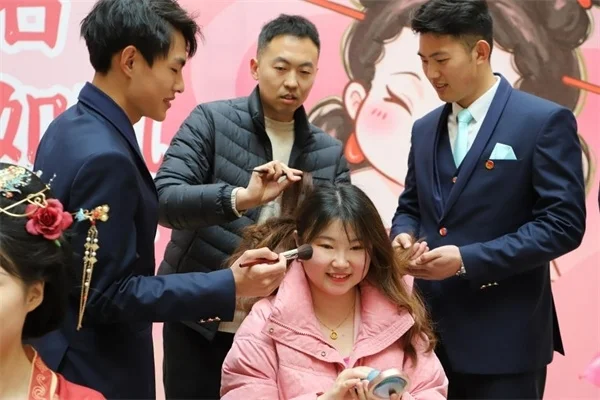 活动现场,数十名身着西服的男同学化身为服装造型师,为具有外貌焦虑的师生进行形象改造。男生们带着欣赏美的眼睛,运用专业的技巧和无限的创意👨🏿🦰🧗🏼♀️,将女生改造成热门动画《哪吒》里的石叽娘娘,或是换装唐制汉服,让参与的女生们体验不同的自己🥏,感受不被定义的美。