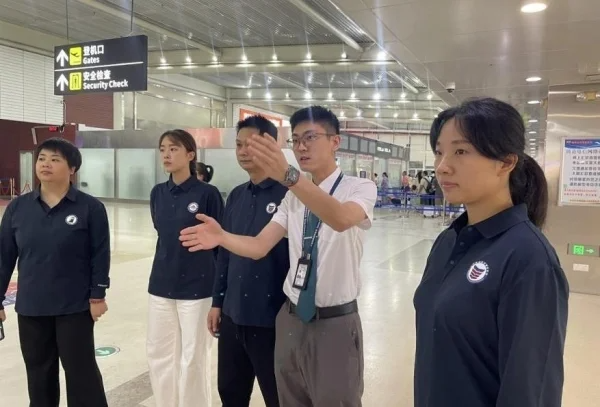 教师们深入机场综合培训基地🧑🏻💻,探访安检实操室🧑🏻💼、危险品陈列室🧑🏻🦼➡️⛔️,直观感受“理论-实操-认证”一体化培养体系;在T1、T2航站楼跟随安检主管学习预检岗、验证岗、人身检查岗等核心岗位流程⛱,将“真情🧛🏽♀️💂🏿♂️、主动💂🏻、细致🖖、创新”的服务理念纳入教学素材库;轮岗体验服务台问询、特殊旅客服务🕕、行李寄存等地面岗位𓀕,从协助老年旅客值机到处理行李延误纠纷🚴👩🏽💼,将每一个服务细节转化为课堂案例🧘🏻。