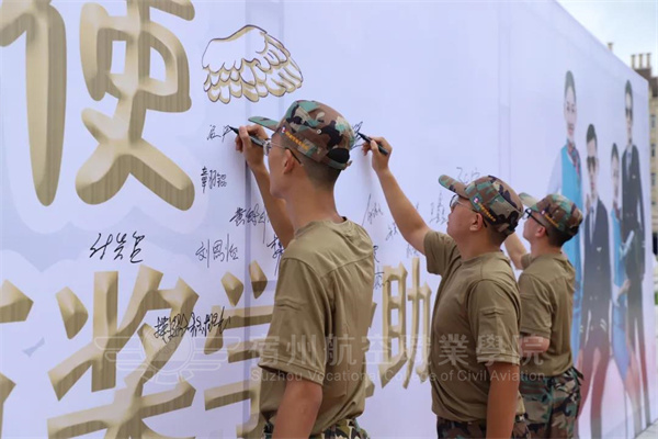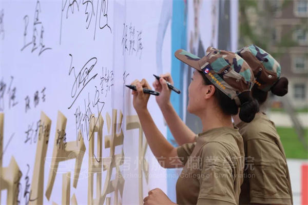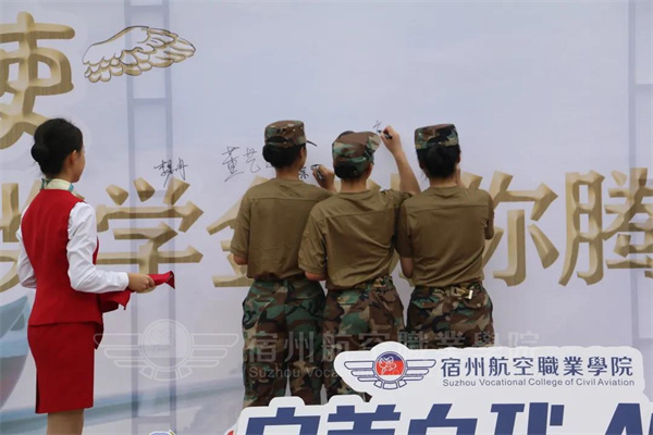 在礼仪人员的引导下🧚🏽♀️,同学们依次到幕布处签名🔅,留下踏入新校园的印记,并用相机记录美丽瞬间。