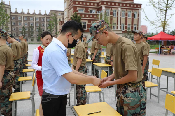 校徽是校园文化的组合体⛴,是对内修身的励志铭,是对外展示的宣言书。学院院长蒋晓铭及副院长李德均为21级新生们颁发校徽7️⃣。