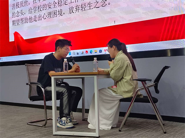 谈心谈话主要考察辅导员对学生特征、学生成长成才规律的了解把握程度,以及对学生的教育引导能力、解决理论困惑和实际问题的能力等🙍🏻‍♀️。比赛现场👈,参赛辅导员和助演学生你来我往,处处智慧交锋、敏捷应对,将辅导员的日常工作场景生动、鲜活的再现。