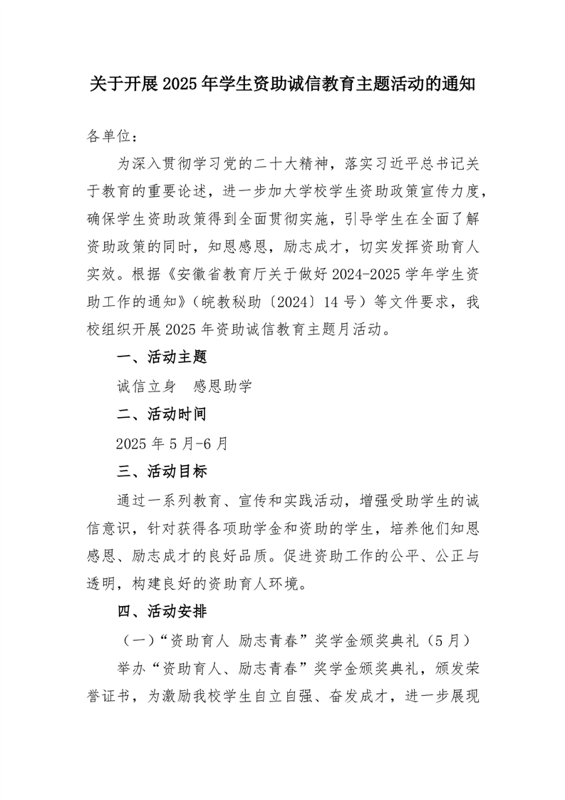 关于开展2025年学生资助诚信教育主题活动的通知