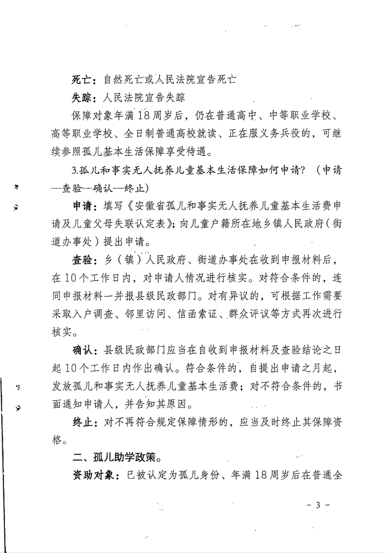 安徽省孤儿和事实无人抚养儿童保障政策宣传明白纸