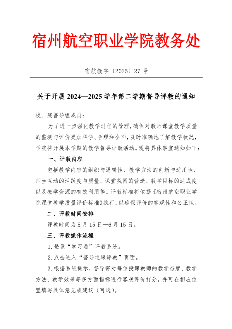 关于开展2024-2025学年第二学期督导巡课评教的通知