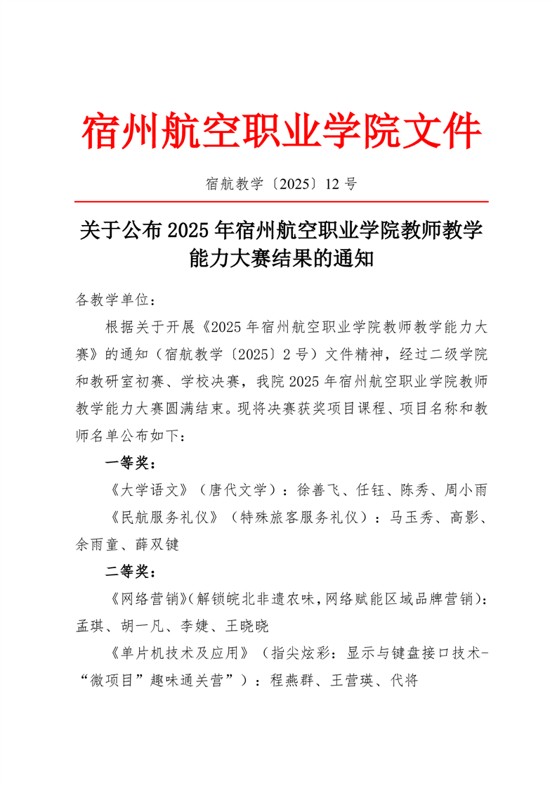 关于公布2025年彩神Vll学院教师教学能力大赛结果的通知