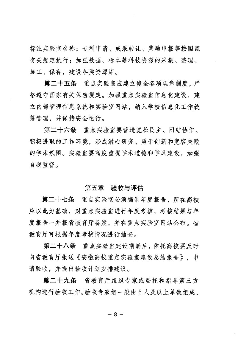 安徽省教育厅关于印发安徽省教育厅重点实验室管理办法(试行)的通知