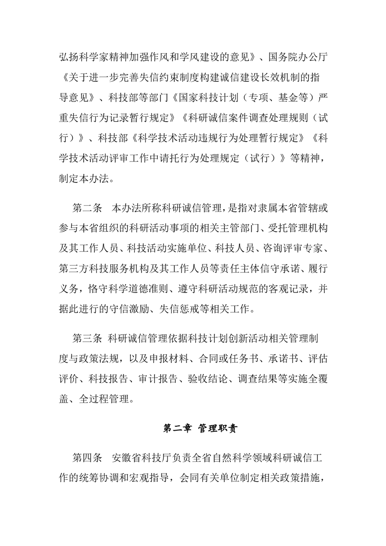 关于印发《安徽省科研诚信管理办法(试行)》的通知