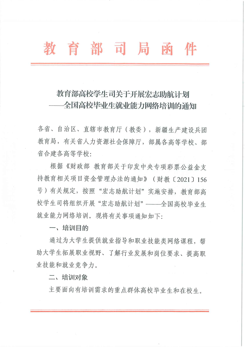 教育部高校学生司关于开展宏志助航计划