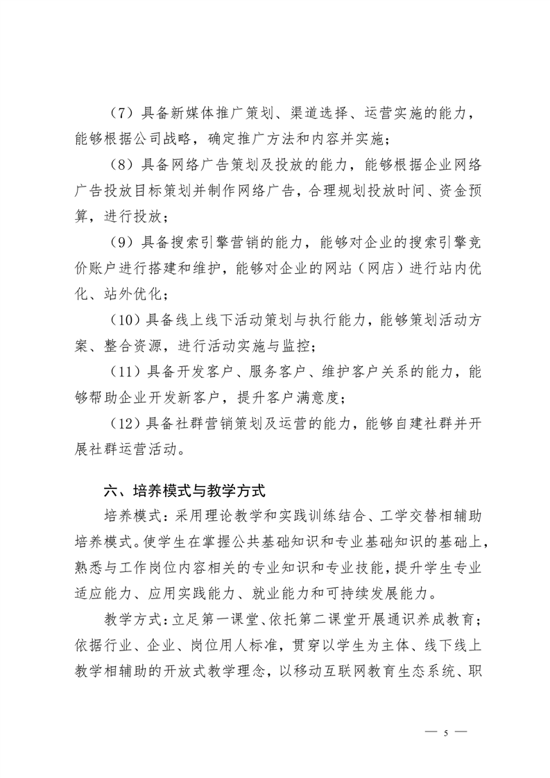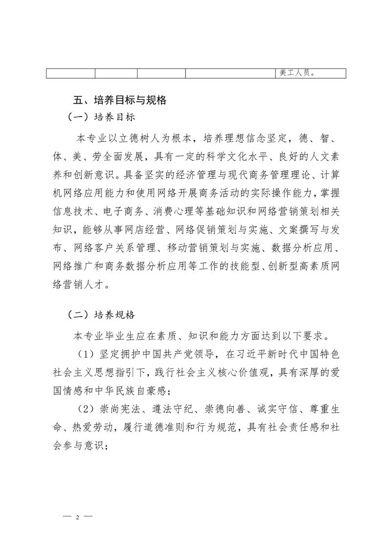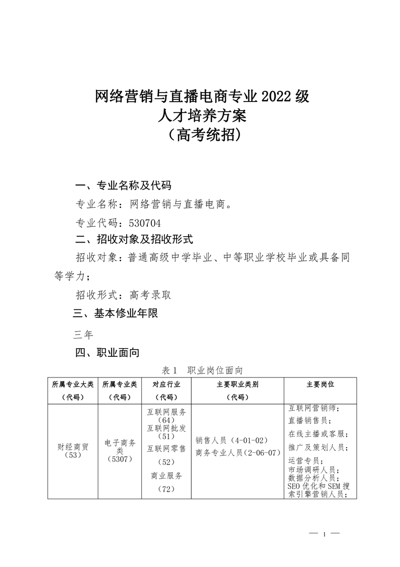 网络营销与直播电商专业2022级 人才培养方案 (高考统招)