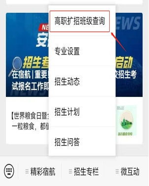 2.进入公众号后,点击“招生专栏”,点击上方“高职扩招班级查询”🫅🏻;