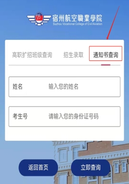 3.点击“通知书查询”;进入页面后根据提示填写考生姓名及身份证号,点击“立即查询”🕍,即可查看通知书邮寄单号;