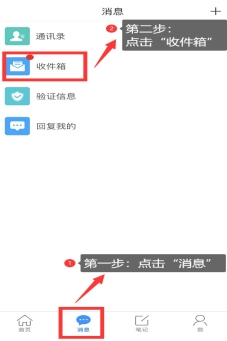 1.点击最下方“消息”⛴,消息栏中选择“收件箱”;查找所报考的对应学校发布“考试通知”,点击进入;