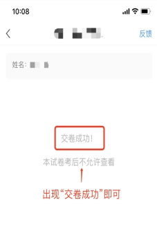 6.成功交卷后,系统会提示“交卷成功”(考试时间截止时会强制收卷)。